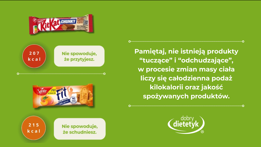 To, czy masa ciała rośnie, spada czy pozostaje bez zmian, zależy przede wszystkim od całodziennej podaży kalorii oraz jakości spożywanych produktów – a nie od jednego konkretnego produktu 💚