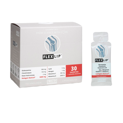 Wysoko przyswajalny kolagen rybi Naticol® wraz z glukozaminą, chondroityną, kwasem hialuronowym, cynkiem, manganem, witaminą C i D w postaci liposomalnej.