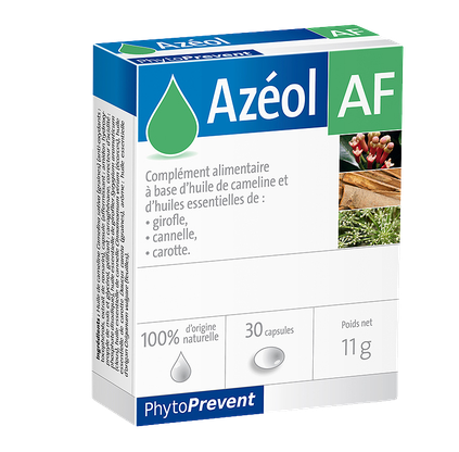 Azeol AF jest suplementem diety opracowanym na bazie oleju z lnicznika siewnego (Camelia sativa) i specjalnej kompozycji olejków eterycznych z goździka, cynamonu i nasion marchwi. Zastosowany w produkcji, opatentowany proces Quality Silver, gwarantuje maksymalną jakość i trwałość oleju w okresie przydatności do spożycia.Rekomendowany do suplementacji w: